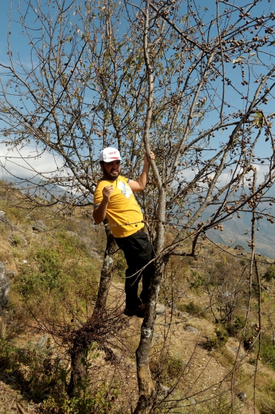 Two days ago, I didn’t tell you all about my walk as I was too tired, and I prefered to tell you about the school. But now I have some time to give you more details. While walking, Hari explained me many things about plants, trees, agriculture, people of the area, and about what has been done in the past few years in the area thanks to western donations (schools, hospitals,...). As I haven't included any pic of Hari yet, here is a funny one of him, climbing on a tree to pick up a wild pear so I could taste it. Well it was not worth the effort ... as I found it disgusting ! ;-)