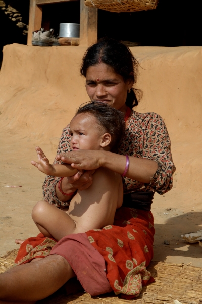 The family is composed of Hari’s parents, his wife and their three children. His parents and his wife work like hell at the moment as farmers, mainly harvesting (maize, millet), looking after their different plantations, getting the milk from their buffaloes every morning and evening, and getting the food for their cattle (5 buffaloes and a few goats) by collecting straw and carrying it by 50 kgs on their heads (using a “namlo”) on steep moutain pathes!