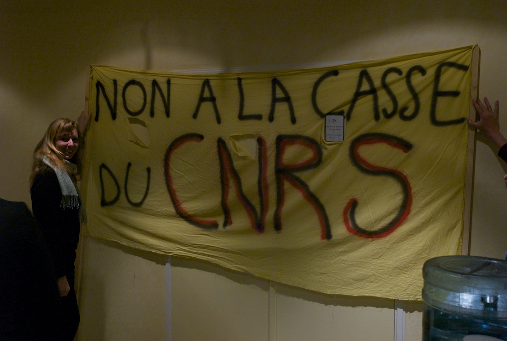 Le siège du CNRS est occupé depuis ce matin, à la suite de la réunion du Conseil d’administration de l’organisme. Nous exigeons la restitution des 1030 postes supprimés cette année dans l’enseignement supérieur et la recherche. Nous n’accepterons pas qu’ils soient remplacés par des emplois précaires. Nous nous adressons solennellement au premier Ministre pour obtenir le rétablissement des emplois supprimés. Nous ne quitterons le siège du CNRS qu’après satisfaction de cette exigence.